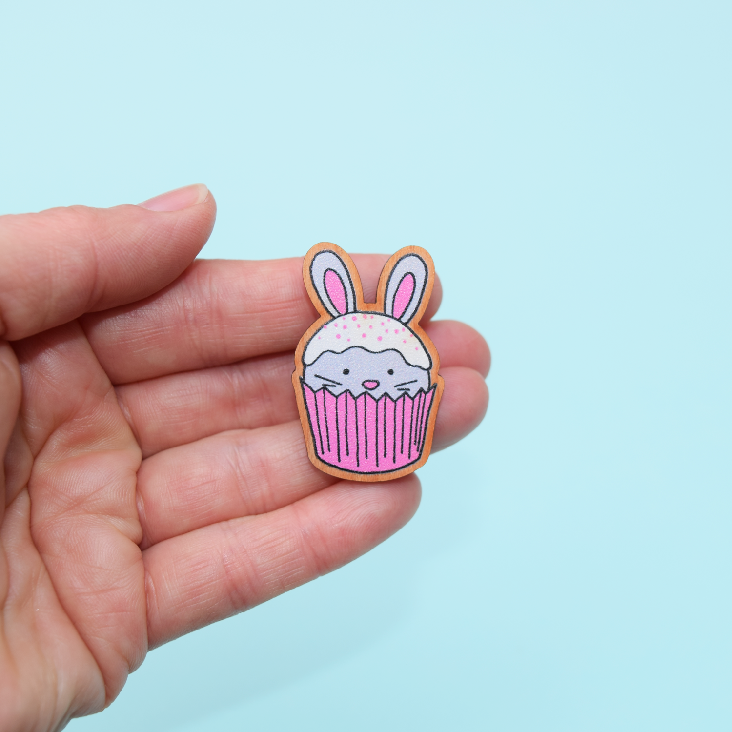 Bunny Cupcake Wooden Pin