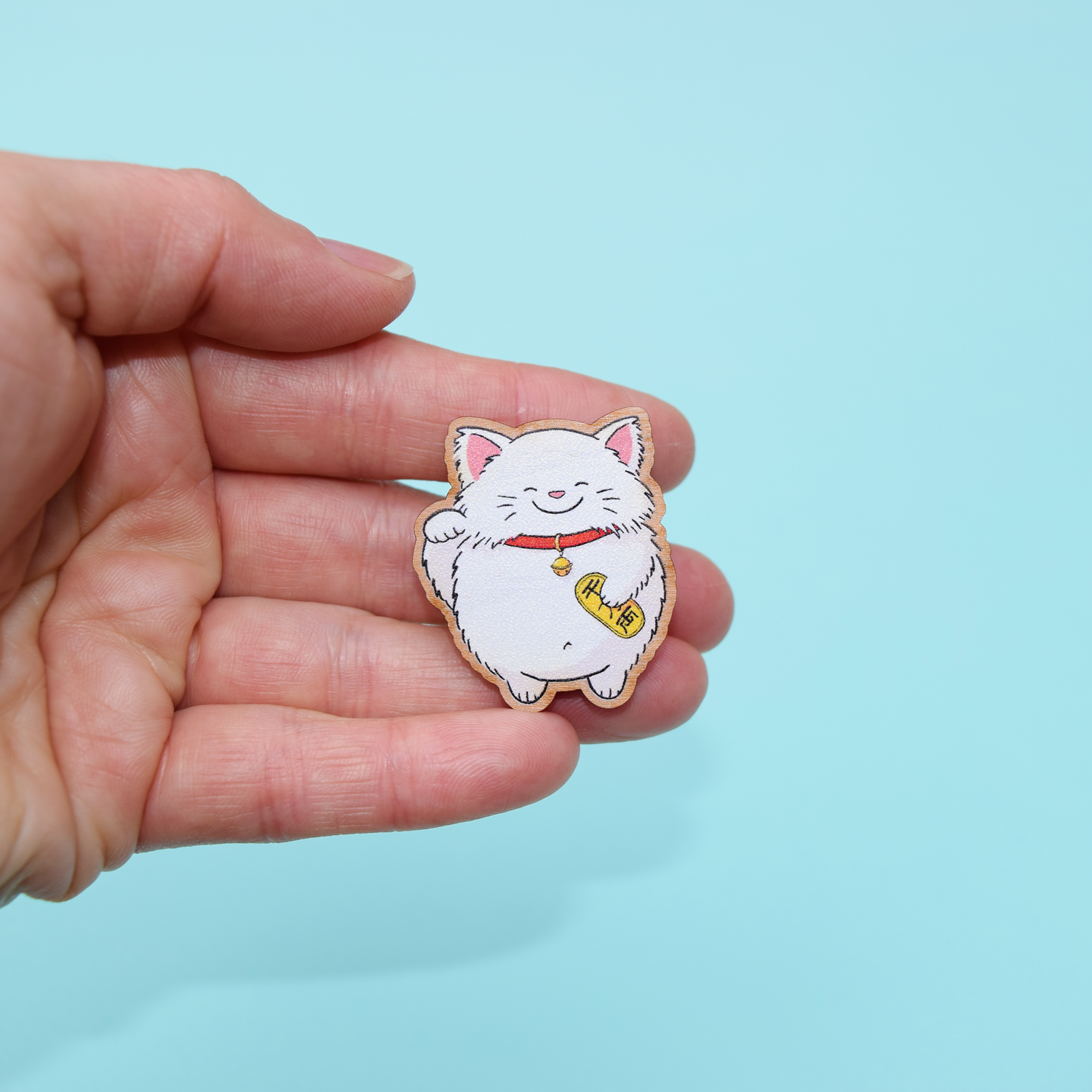 Lucky Cat Wooden Pin